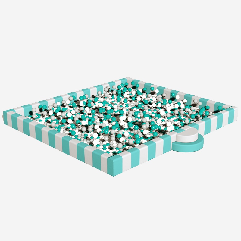 Diseñado como equipo de juego suave para interiores para niños, cuenta con paredes acolchadas a rayas de color blanco verdoso y bolas de colores mixtos, lo que equilibra el atractivo visual lúdico con la eficiencia del espacio. Las dimensiones personalizables se adaptan a zonas interiores pequeñas, mientras que los bordes completamente acolchados eliminan el riesgo de lesiones, lo que se adapta tanto a cruceros como a áreas de juego en tierra.