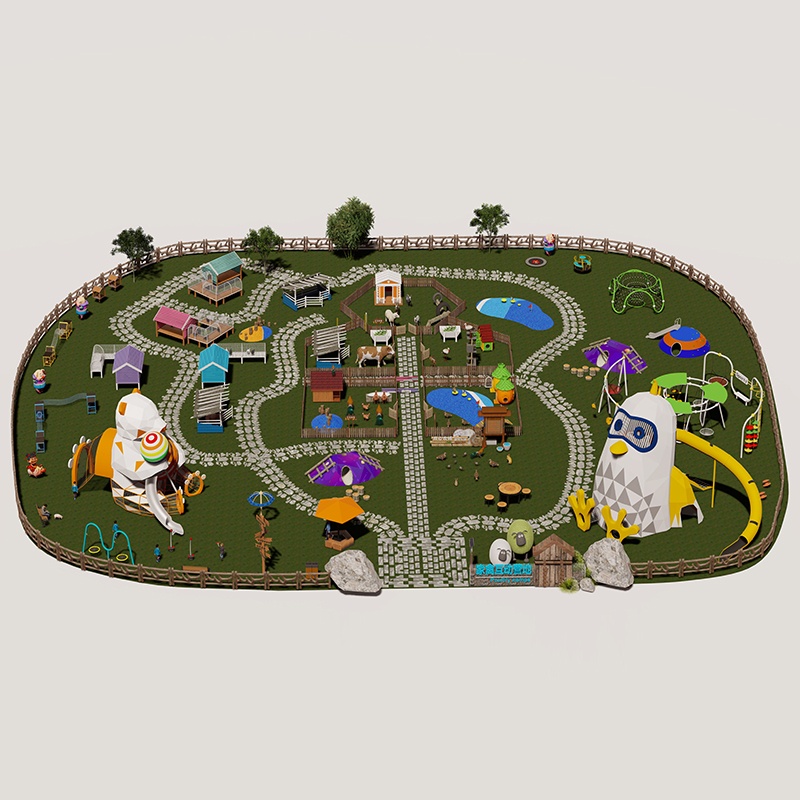 Nuestro patio de recreo de mascotas presenta caminos integrados de la naturaleza meticulosamente elaborados que conectan sin problemas las estructuras de juego con las estaciones de interacción mascotas, lo que permite a los niños disfrutar de encuentros seguros y controlados con mascotas y otros adorables niños.